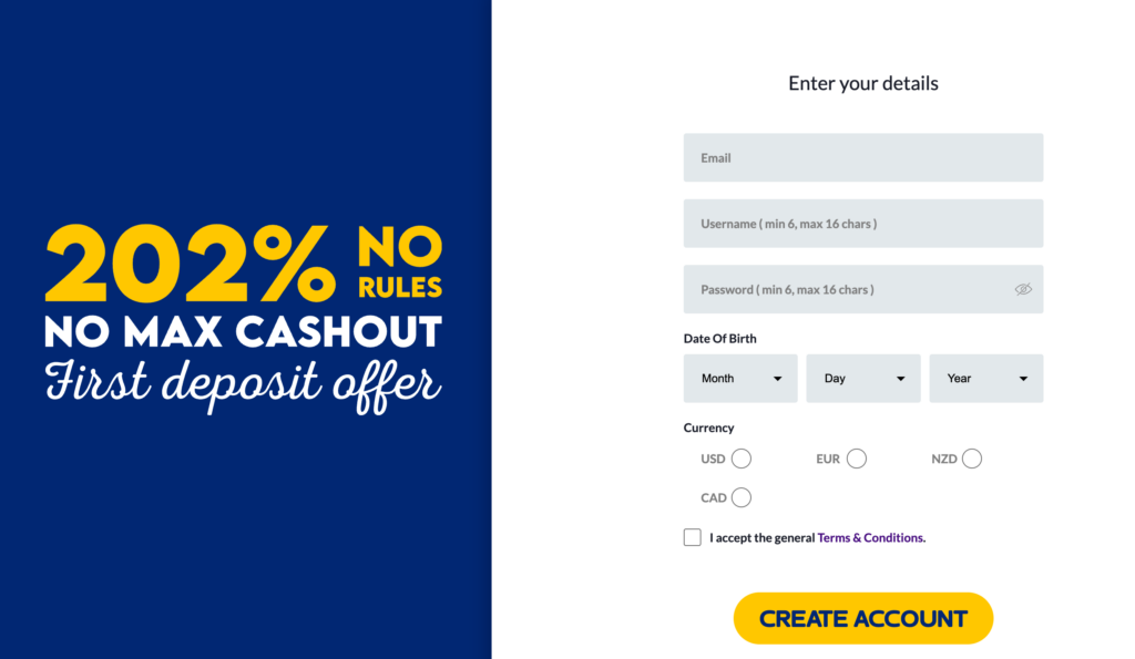 To join YabbyCasino fun treat, everyone has to create an account first. This way you can play on any of your devices and track your sessions anytime, anywhere. However, only Australian users who are 18 years old and above can create an account. This is in line with our Curaçao e-gaming licence, which mandates responsible gambling.